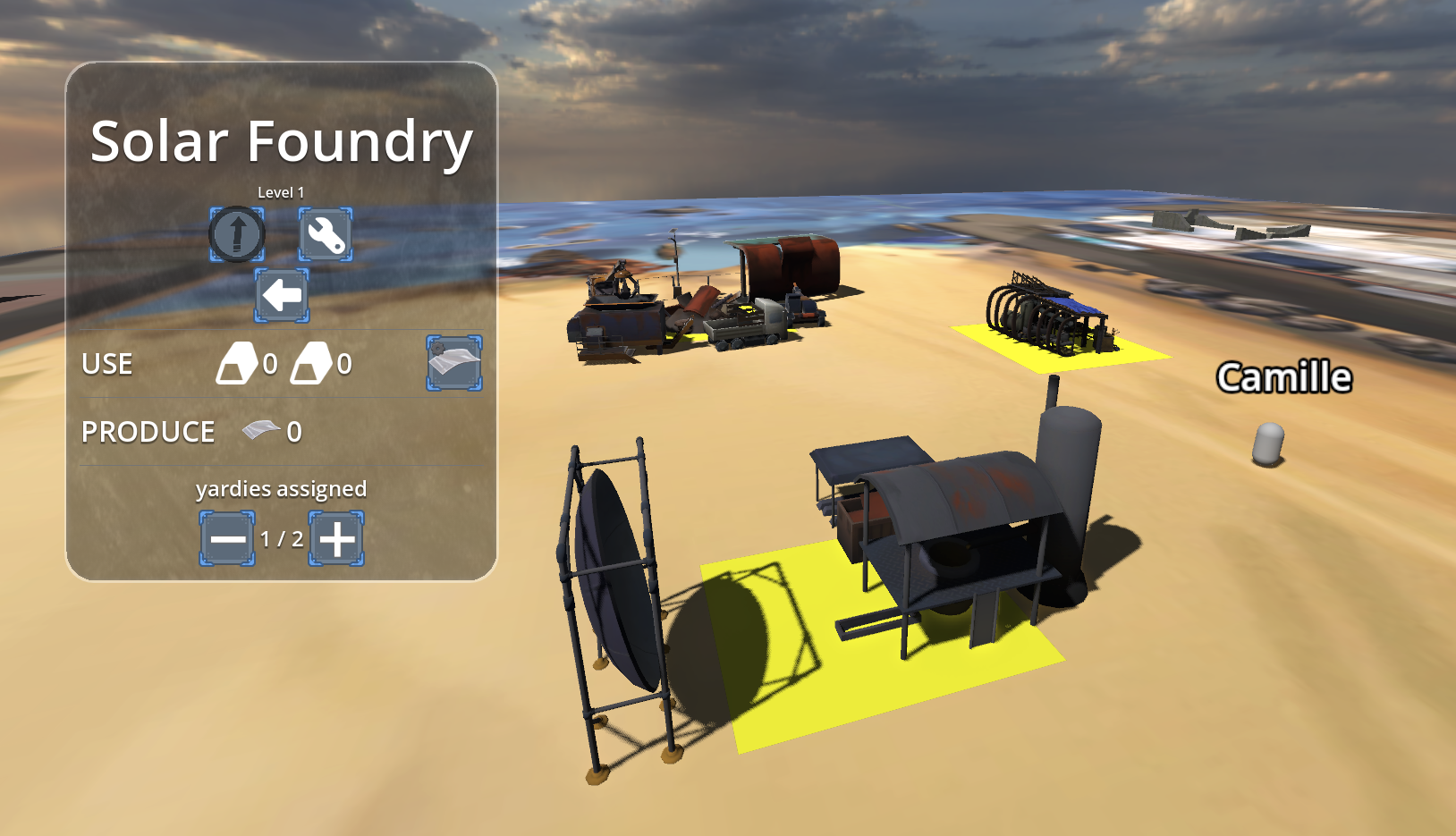 The solar foundry can now toggle between producing ingots or steel plates and has a nice bounce animation when you add more yardies (workers).