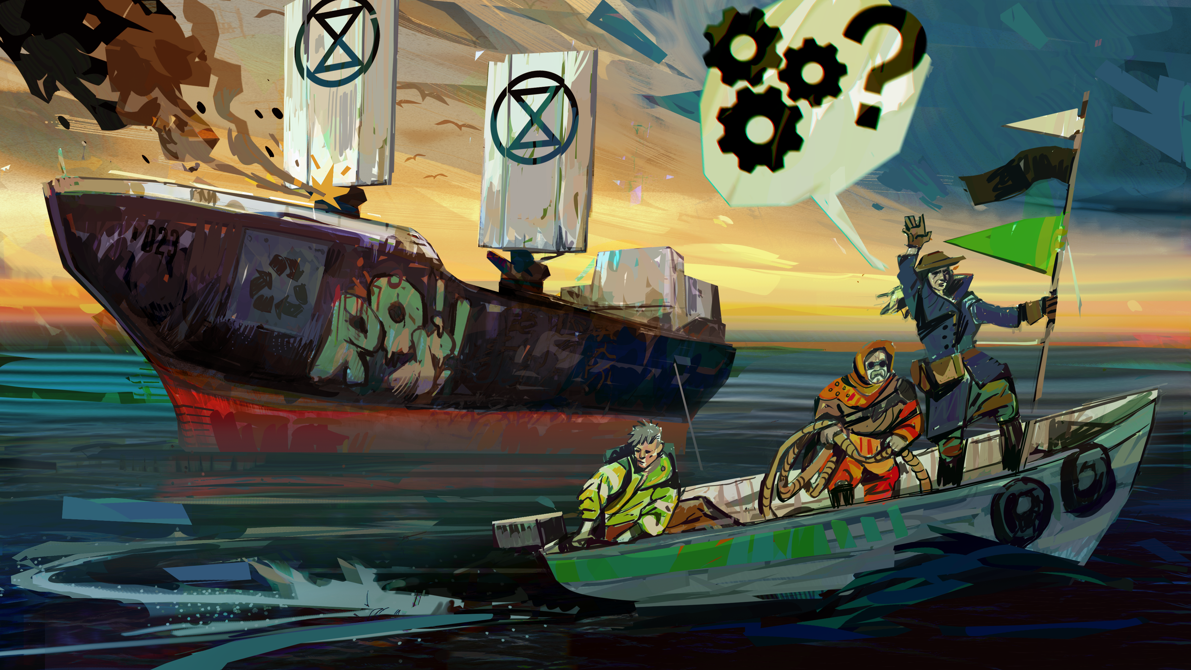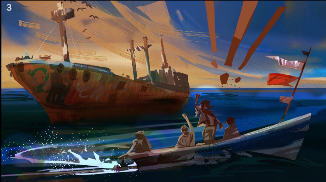 Mostrovska started another event illustration for "eco-pirates ask for ship repairs".