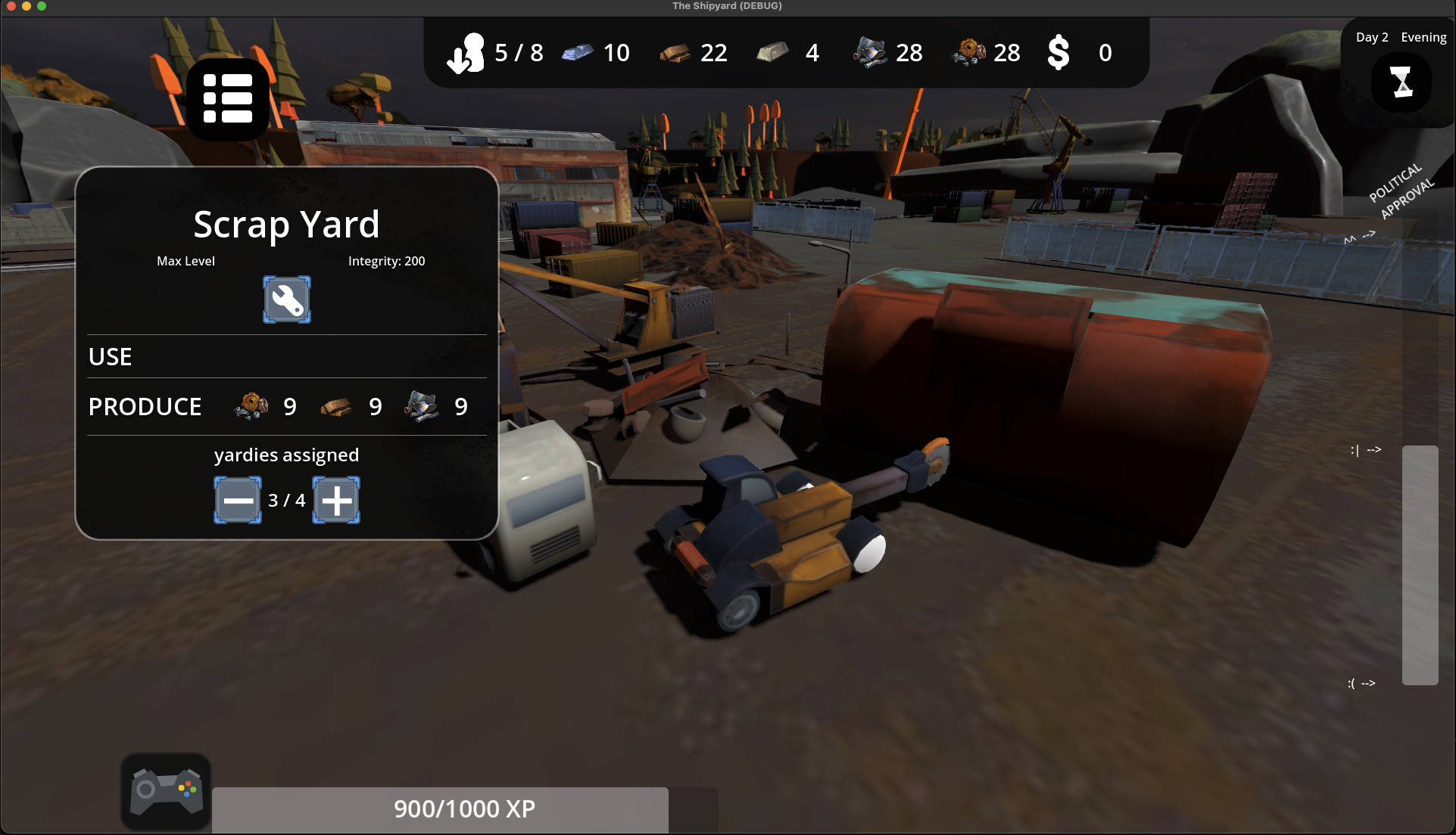 We're slowly but surely getting closer to having a functional gameplay loop with events that damage the shipyard and expeditions/shipping contracts to get cash for repairs.