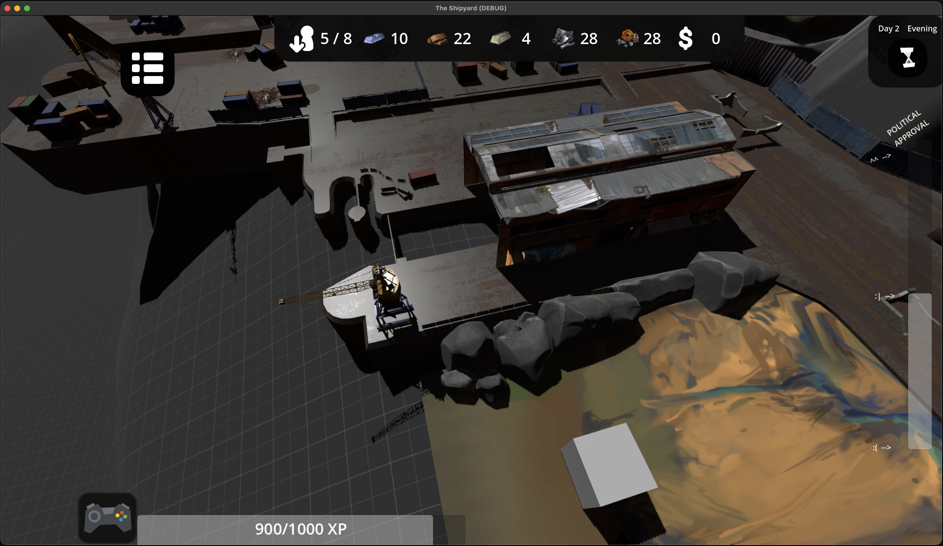 If you're just now finding out about this project, we're making a game where you manage a shipyard and build the most ecological fleet possible while dealing with natural disasters and your polluting competitors.