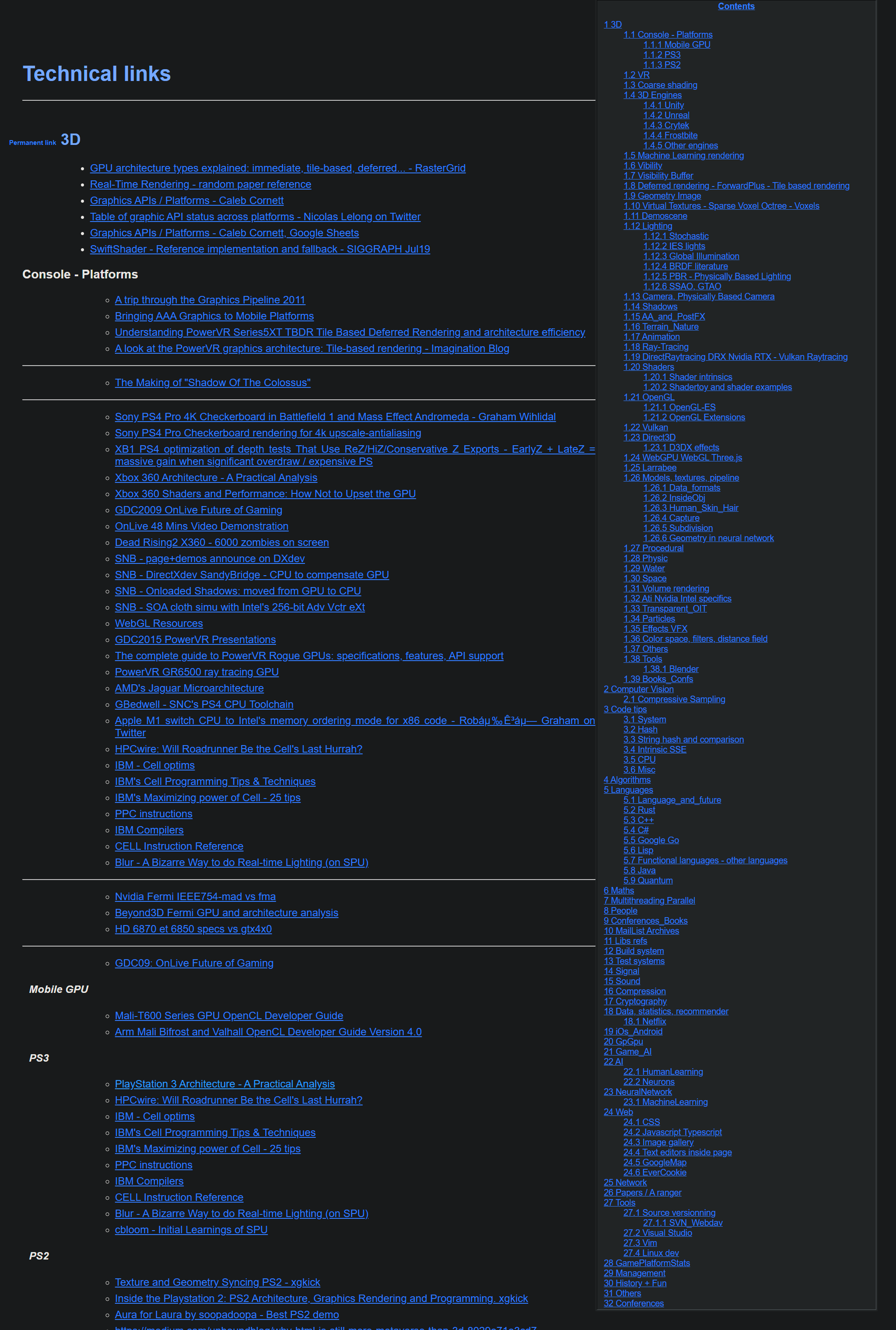 another treasure mine for rendering tech links (with some good separation per topic like deferred, lighting, GI,...etc.), found it while digging for a paper 🥹